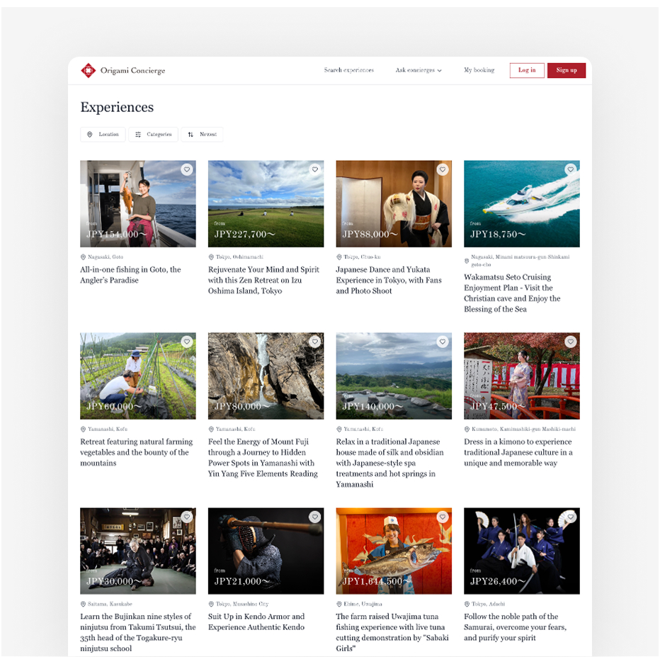 ビヨンドでは、弊社の運営の、海外中間富裕層向け・特別体験販売メディア「Origami Concierge」での掲載・販売を通じて、インバウンドに最適化した、より売れる商品・サービスにプロデュースします。